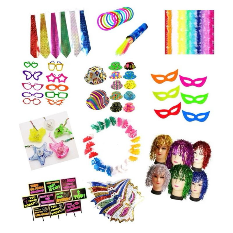 Kit Balada Festa 260 Itens Aderecos Casamento Aniversario Confraternizacao Pulseira neon Marabu Oculos Tiara Gravata