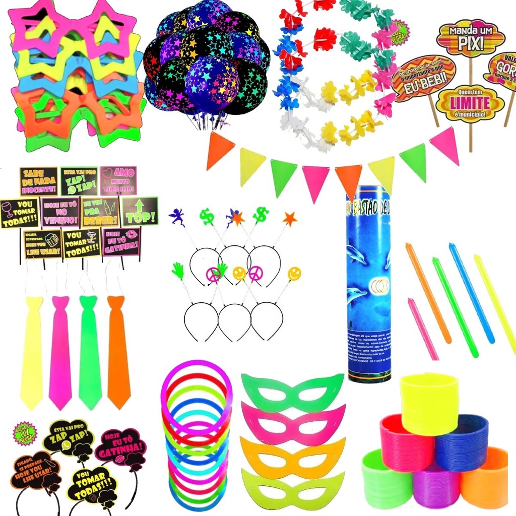 Kit adereços para animar festa balada neon 170 itens casamento formatura debutante