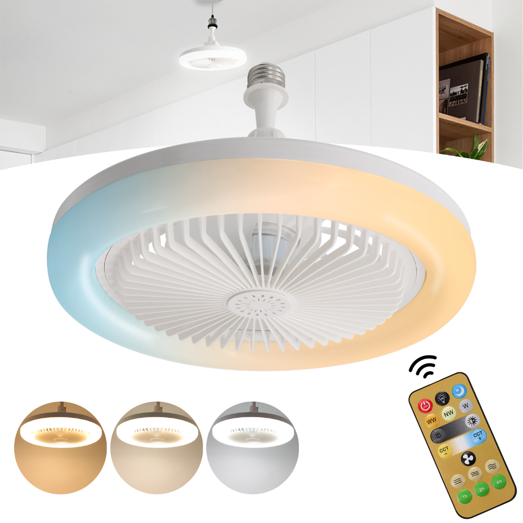 Ventiladores De Teto Com Controle Remoto E Lâmpada LED De Luz Ventilador E27 Base Conversora Silenciosos Inteligentes Para Sala De Estar Do Dormitório