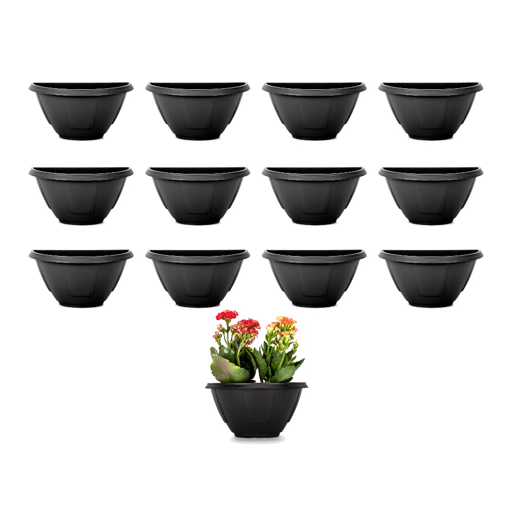 Kit 10 Vaso de Parede Meia Lua Preto de Plastico Flores e Plantas Resistente