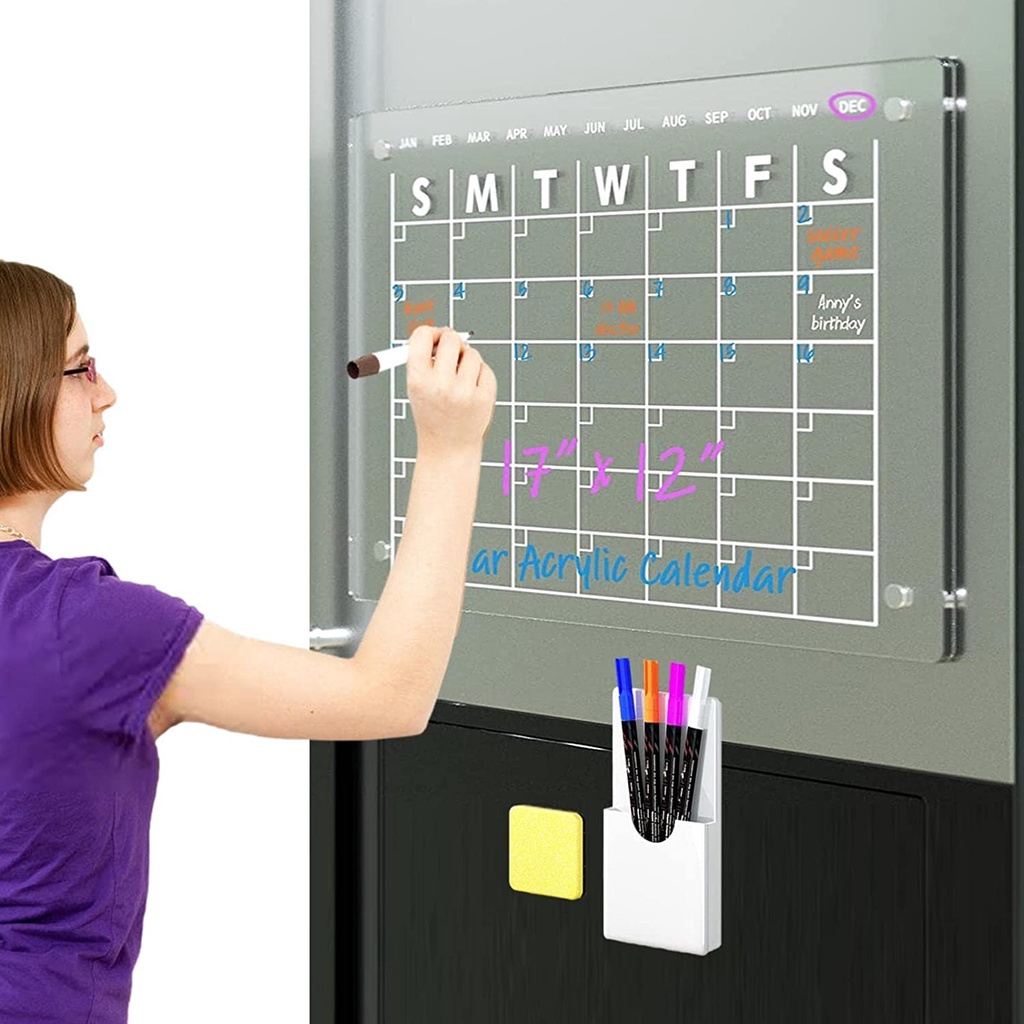 Ímã De Geladeira Planner Calendário Semanal Mensal Recados Anotações Acrilico Transparente com canetas Lousa
