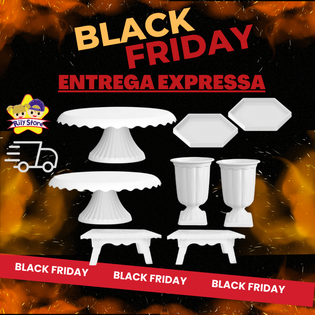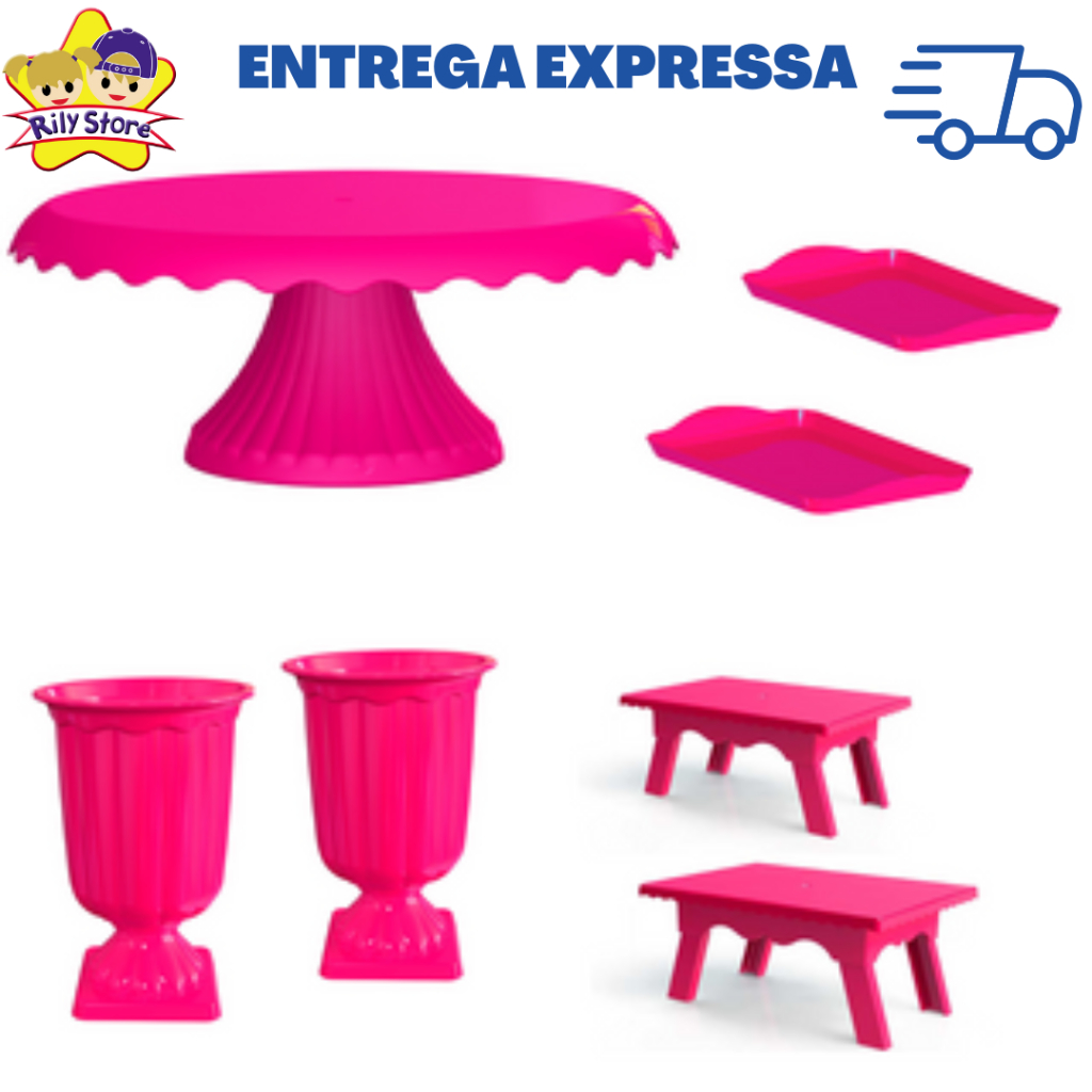 Kit Festa Variado - 1 Vaso Grego , 1 Mesinha , 1 Boleira Cake Renda 19cm , 2 Bandeja Quadrada