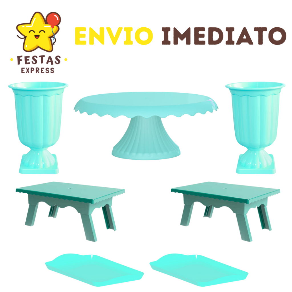 Kit Festa (1 Boleira Cake Renda 19 + 2 Vaso Grego + 2 Bandeja 20x13 + 2 Mesinhas)