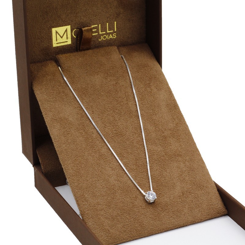Corrente Colar Feminina Delicada com Pingente Ponto de Luz coração Pedra Zircônia em Prata 925