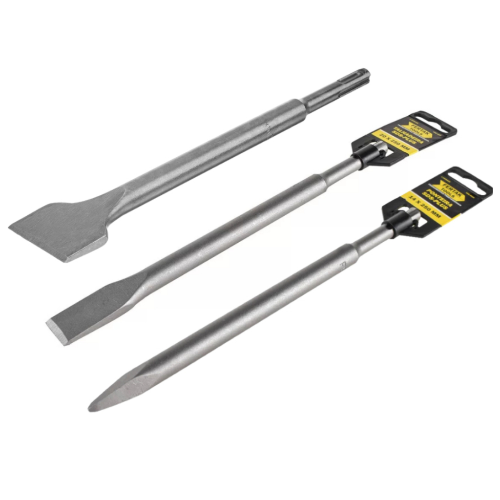 Kit Ponteiro e Talhadeira Estreita e Larga Plus SDS 250mm Aço Tungstênio Profissional