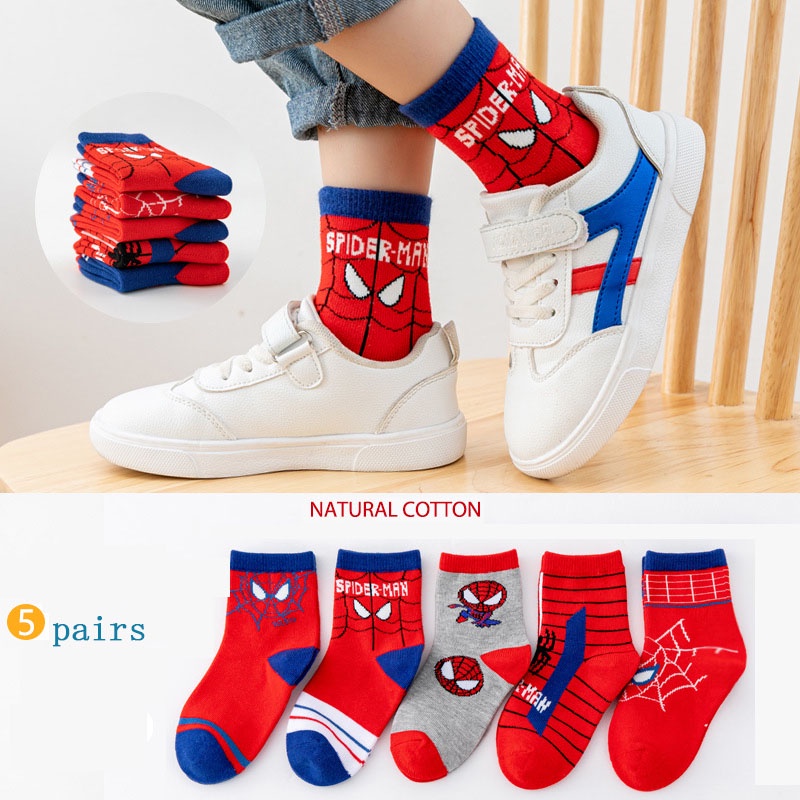 5 Pares Meias Infantis De Algodão Respirável Com Desenho Homem-Aranha Para Crianças/Meninos/Outono/Inverno