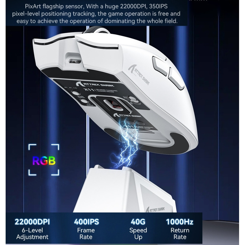 2024 Comércio Exterior Novo Ataque Shark X11 Mouse 2.4G Leve PAW3311 Jogo Sem Fio Bluetooth Três Mode Mouse Com Recarregável RGB Base