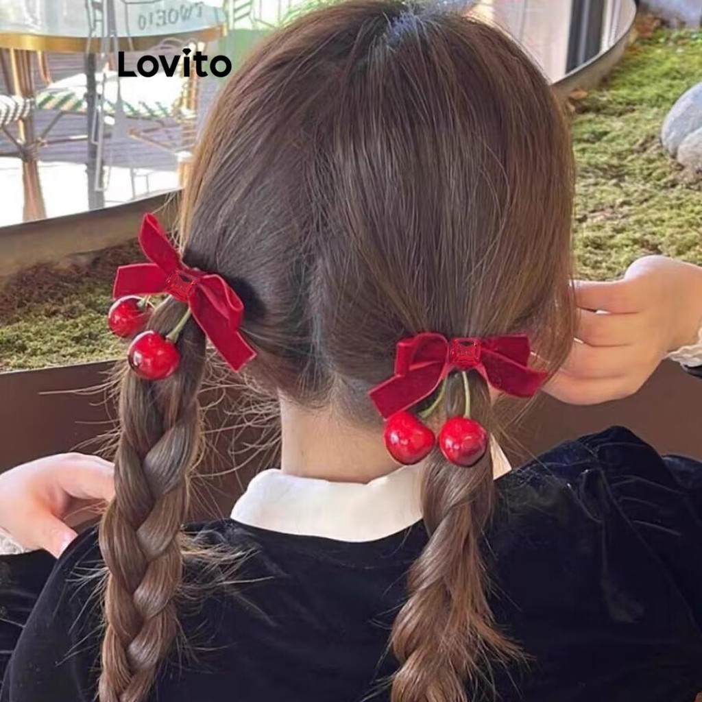 Lovito Fofo Presilha de Cabelo Feminina Arco de Veludo com Strass Estampa de Fruta Cereja e Legumes LFA10493