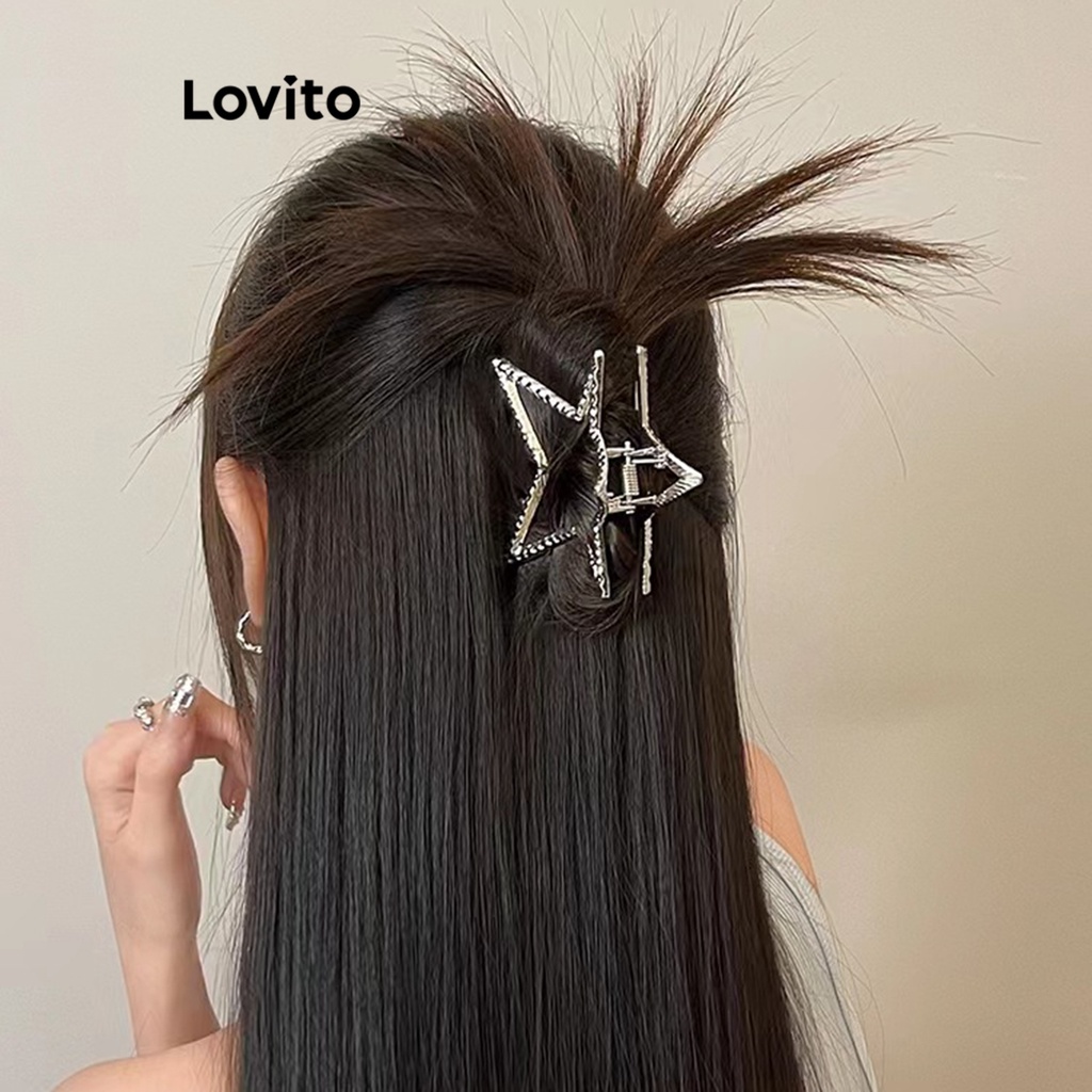 Lovito Casual Presilha de Cabelo Feminina Simples de Metal com Estrelas LFA11130