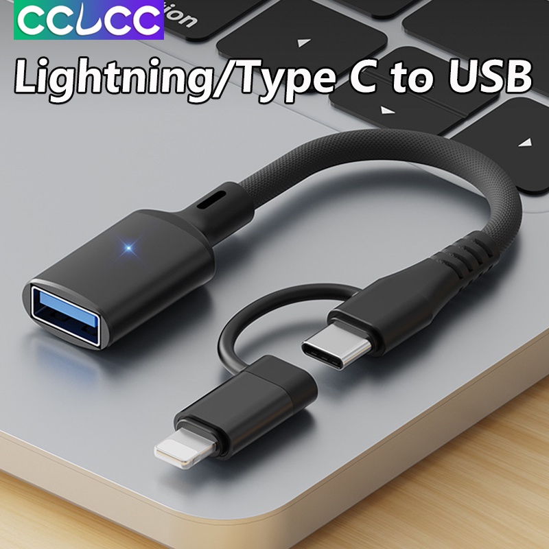 CCLCC Relâmpago + Conversor Tipo C Para USB 3.0,2 Em 1 Adaptador OTG iPhone 15/14/13 Pro Max 12 11 xs xr/iPad/Android Dispositivo Disco U/Mouse/Keyboard