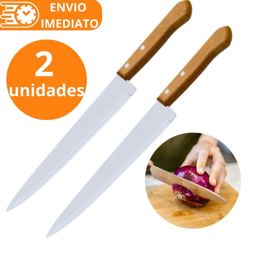 KIT 2 Faca de Cozinha Inox Profissional 7 Cabo de Madeira para Casa Restaurante 30CM