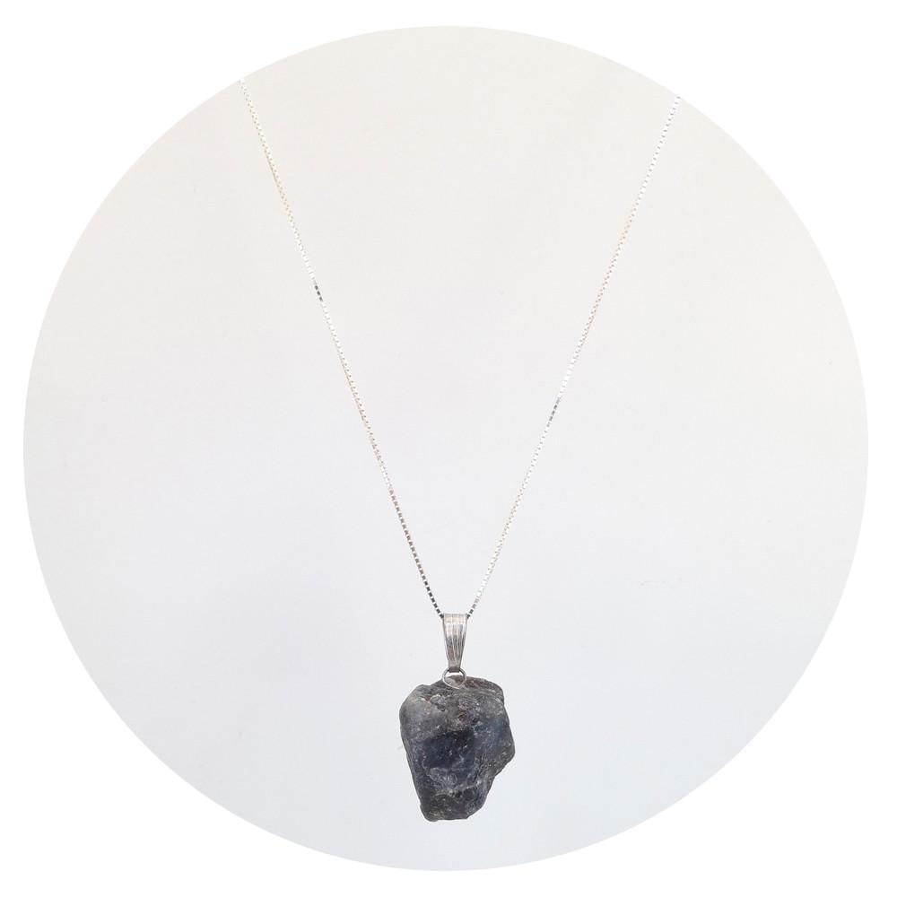 Colar Prata 925 Safira Bruta - Natural E Legítima P. Vecchio