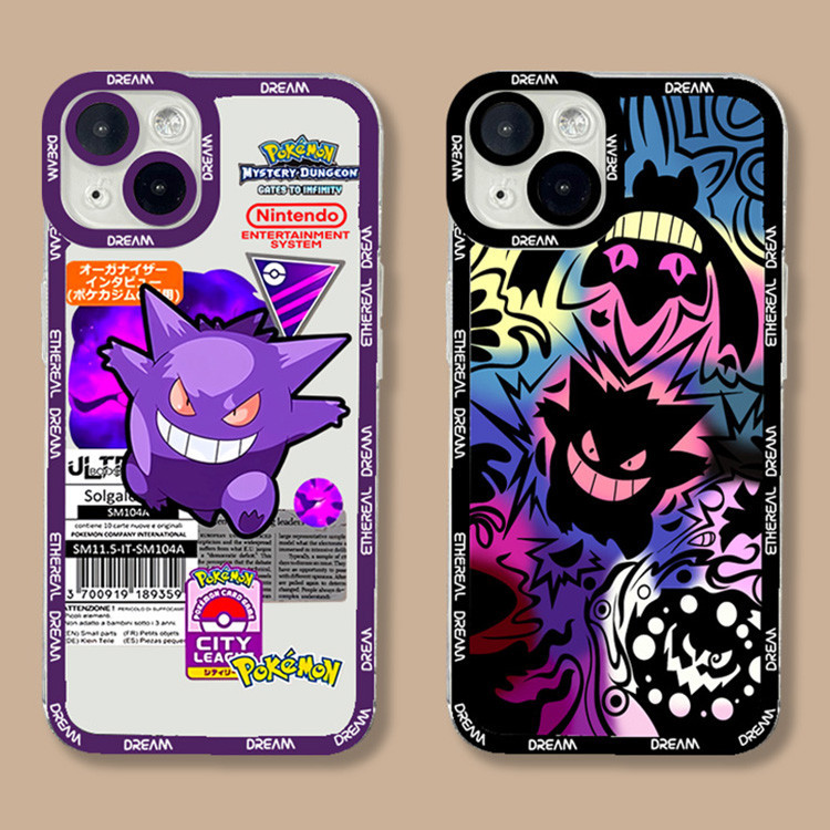 Capa Macia Transparente De Silicone Gengar Anime Pokemon Para iPhone 16 15 14 13 12 11 Pro Max XR X XS 7 8 14 15 Plus SE 2020 12 13 Mini Engraçado Púrpura