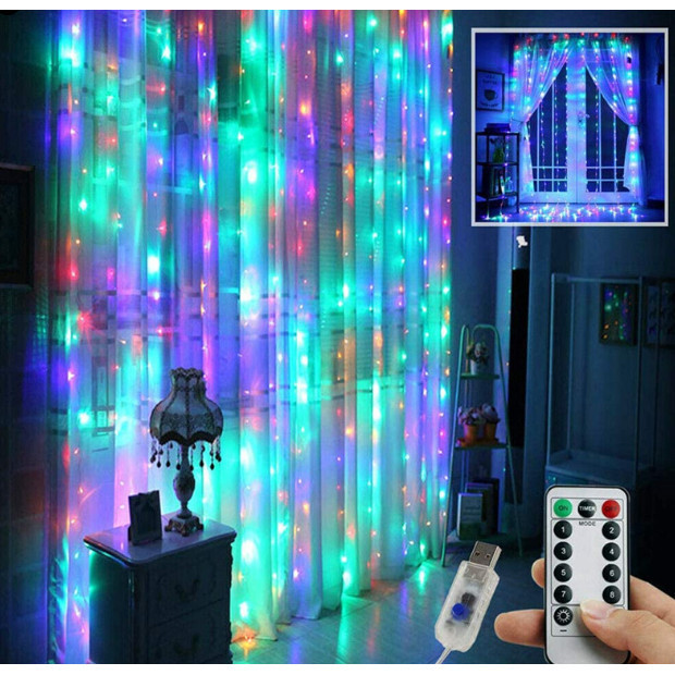 Janela Cortina 3x2 metros led pisca pisca Luzes Cordas 8 Modos De Iluminação De Cobre Fio De Fadas