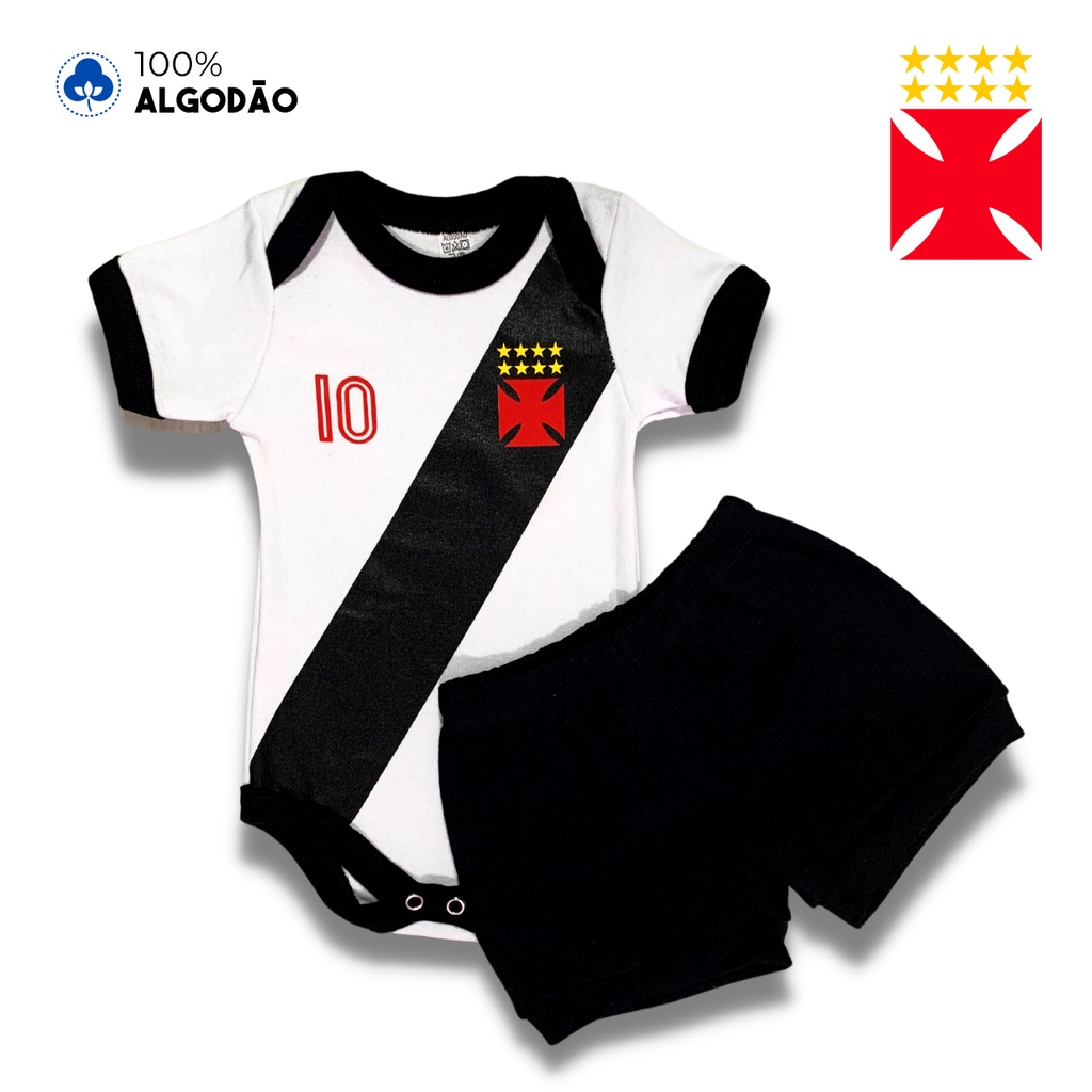 Conjunto Bodie Bebe Time de Futebol Vasco Infantil Gigante da Colina