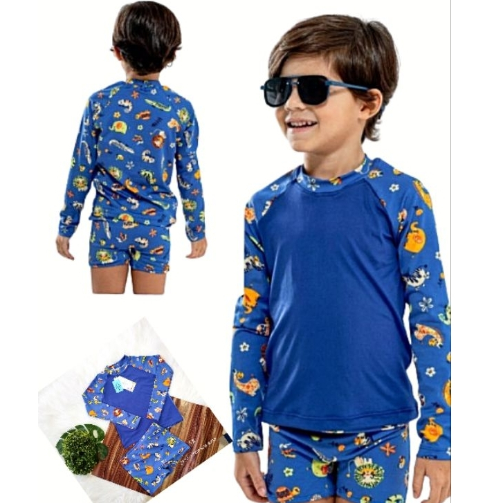 conjunto infantil proteção uv menino blusa e sunga boxer térmica 1-8 ANOS roupa de banho praia