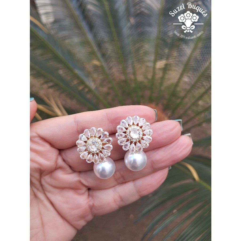 Brinco de Pérola Strass Noivas Festas Casamentos Bodas