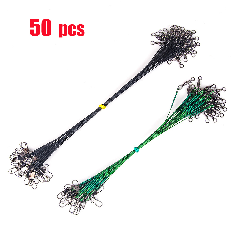 10/20/50Pcs Líderes De Pesca Linha Em Aço Inoxidável Fio De Rigging Com Swivels Snap Para Iscas Ou Anzóis