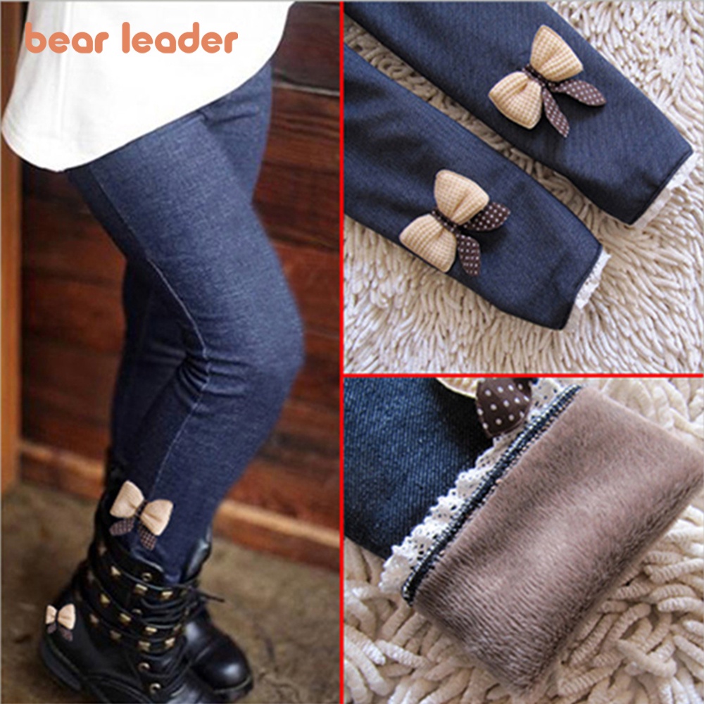Líderes Do Urso Meninas Imitação De Pelúcia Quente Leggings De Denim Calças De Inverno De Outono Infantis De 2-8 Anos De Idade Fundo De Arco