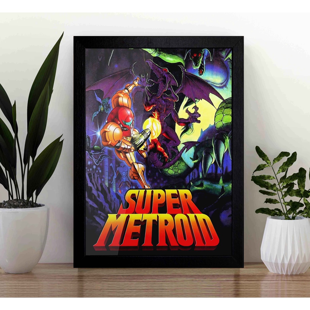 Quadro Super Metroid A3 - com Acrílico Na Frente (Tamanho 45.5 X 33 Cm) Poster Gamer Decorativo