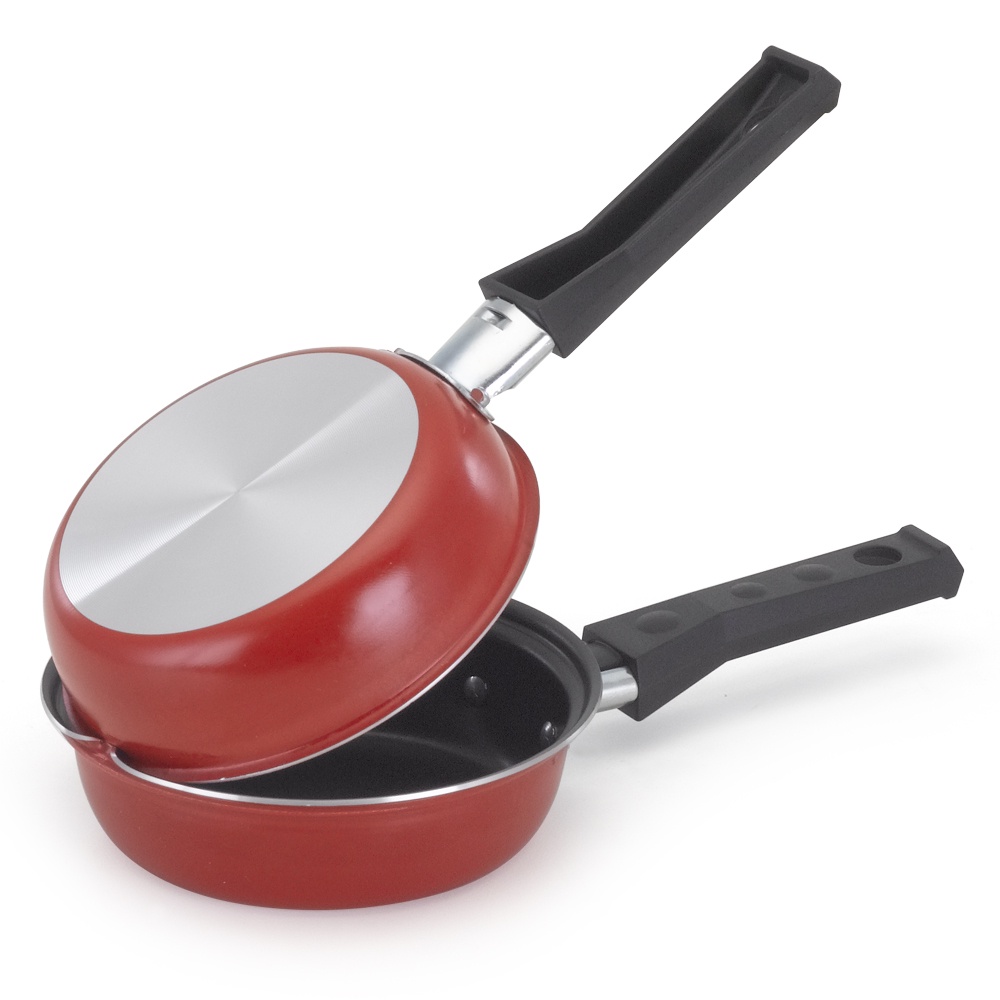 Frigideira Dupla Hamburgueira E Omeleteira Antiaderente 14cm Linha Color Vermelho