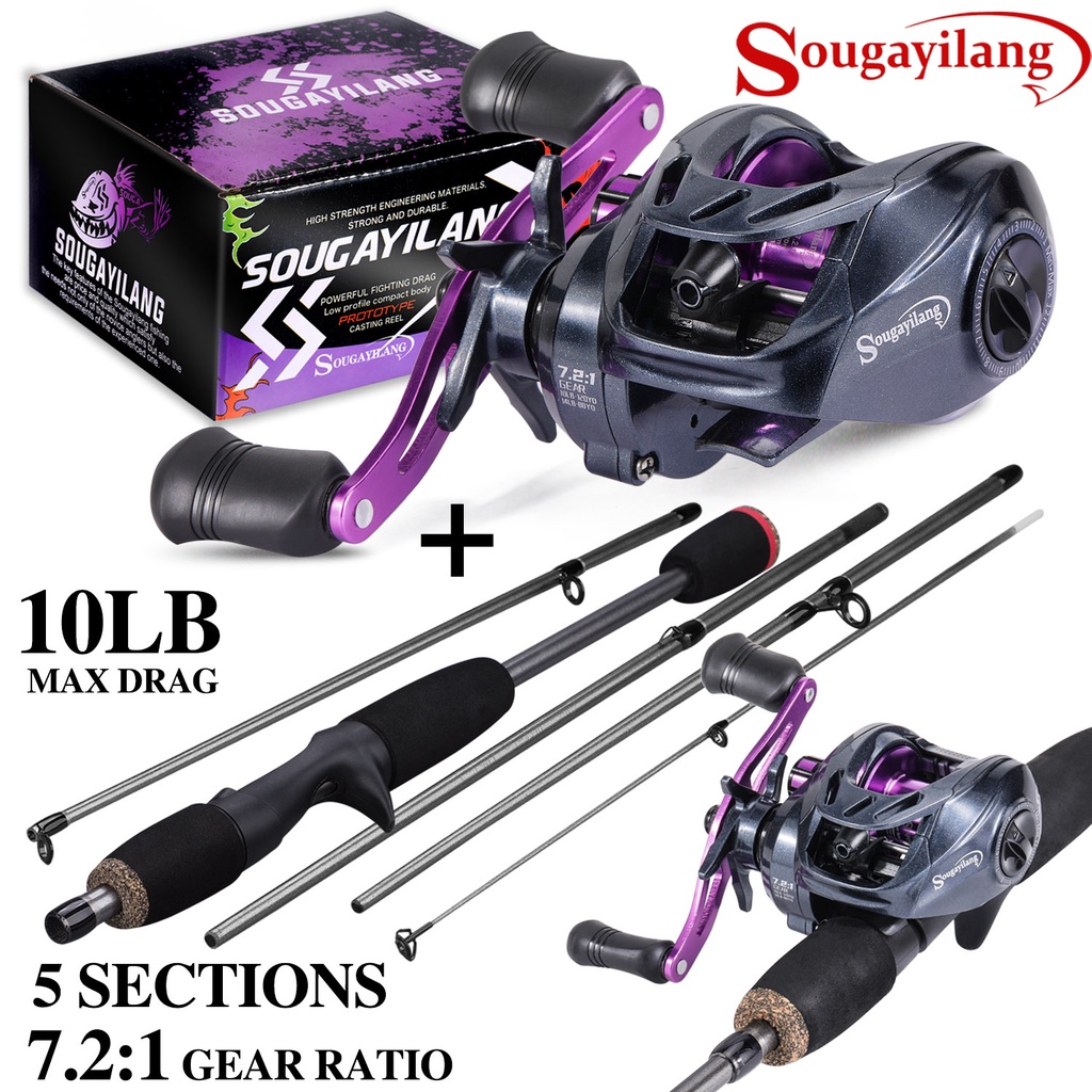 Sougayilang 5 Seções 1,8m Vara De Pesca Com 7,2 : 1 Conjunto De Carretel De Alta Velocidade Max Drag 10kg