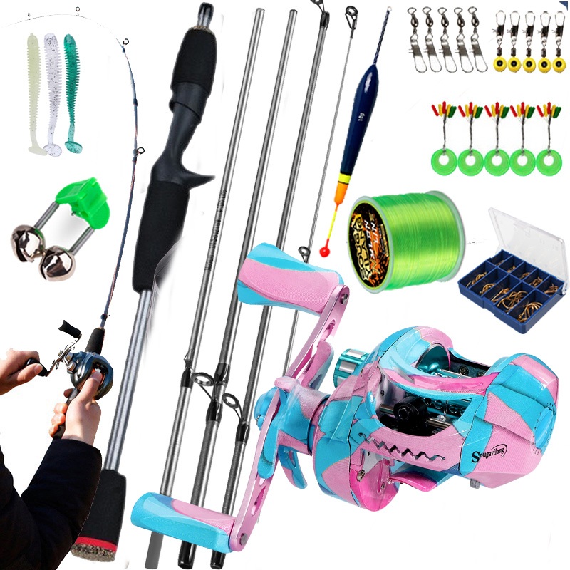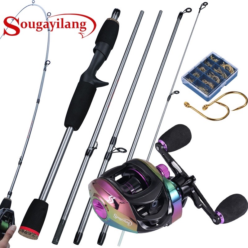 Vara de pesca com carretilha Sougayilang 1.8m Conjunto De Carretel De Pesca Com Haste Fundida Isca Anzol 17 + 1 Rolamentos De Esferas 7.2 : 1 Relação Engrenagem Acessórios Rodas Metálicas