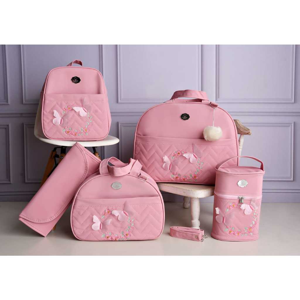 Kit bolsa maternidade borboleta para menina 5 peças