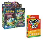 Kit Pokemon Booster Box (Caixa c/ 36 pacotes) EV6 Máscaras de Crepúsculo Copag + Color Addict kids