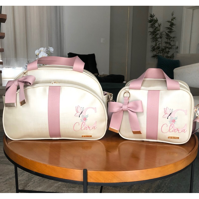 kit de Bolsa Mochila e Frasqueira Maternidade Personalizada Menina e Menino