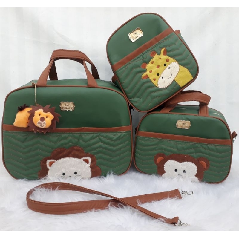 Kit bolsa maternidade modelo safari de 3 e 4pçs para menino e menina