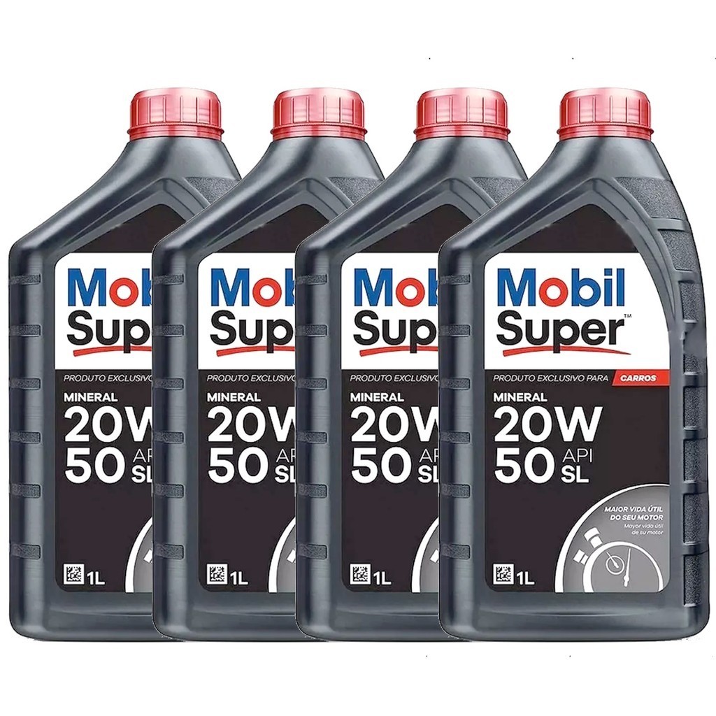 Kit Óleo Lubrificante do Motor para CARROS Mobil Super 1000 20w50 Mineral API SL - 4 litros