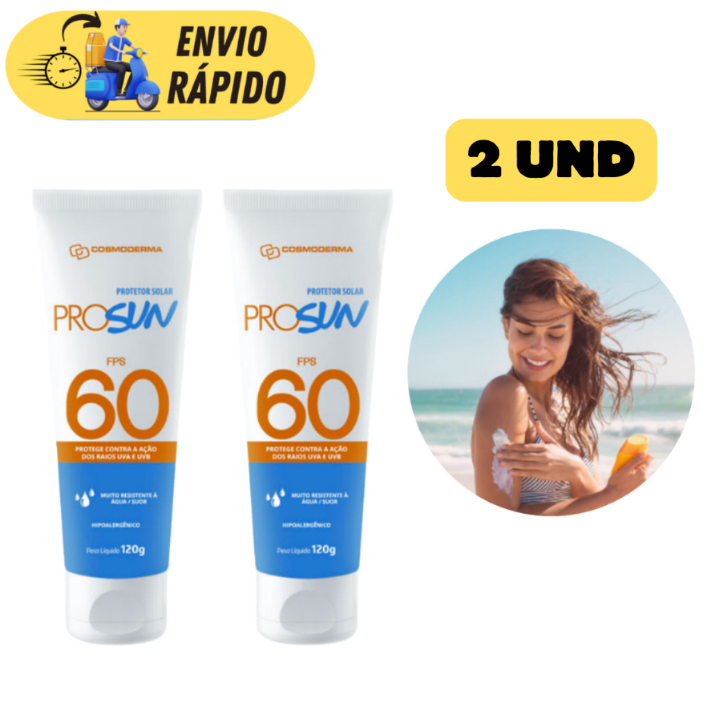 KIT 2 UNIDADES PROTETOR SOLAR COSMODERMA FPS 60 120ml PARA PELES SENSÍVEIS E OLEOSAS FACIAL E CORPORAL PARA PRESTADORES DE SERVIÇO MOTORISTAS E LAZER