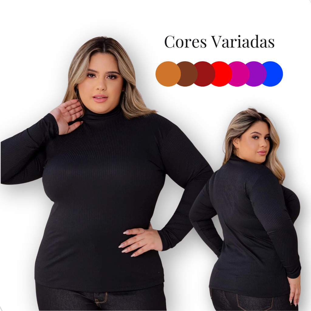 BLUSA FEMININA CACHARREL PLUS SIZE MALHA CANELADA PROMOÇÃO GOLA ALTA DIVERSAS CORES MODA TENDÊNCIA