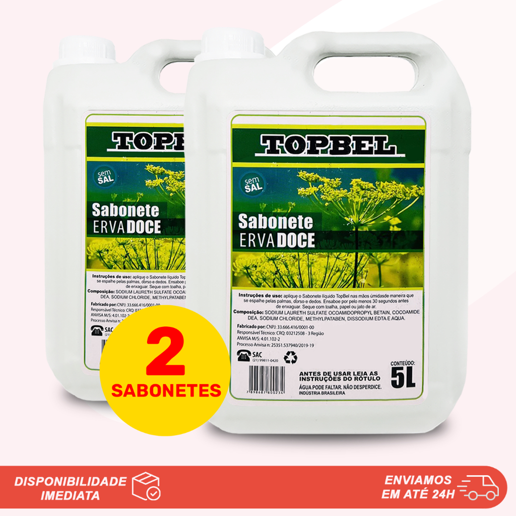 KIT PROMO 02 Sabonetes Líquidos Erva Doce Topbel 5 Litros
