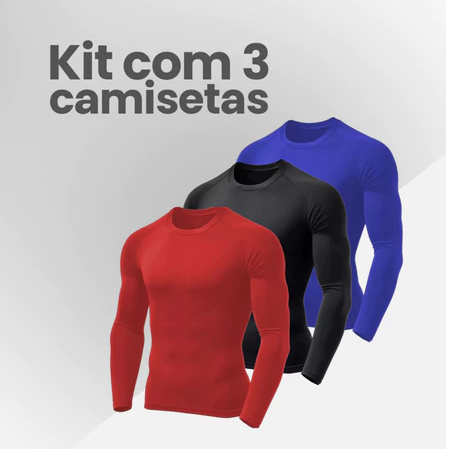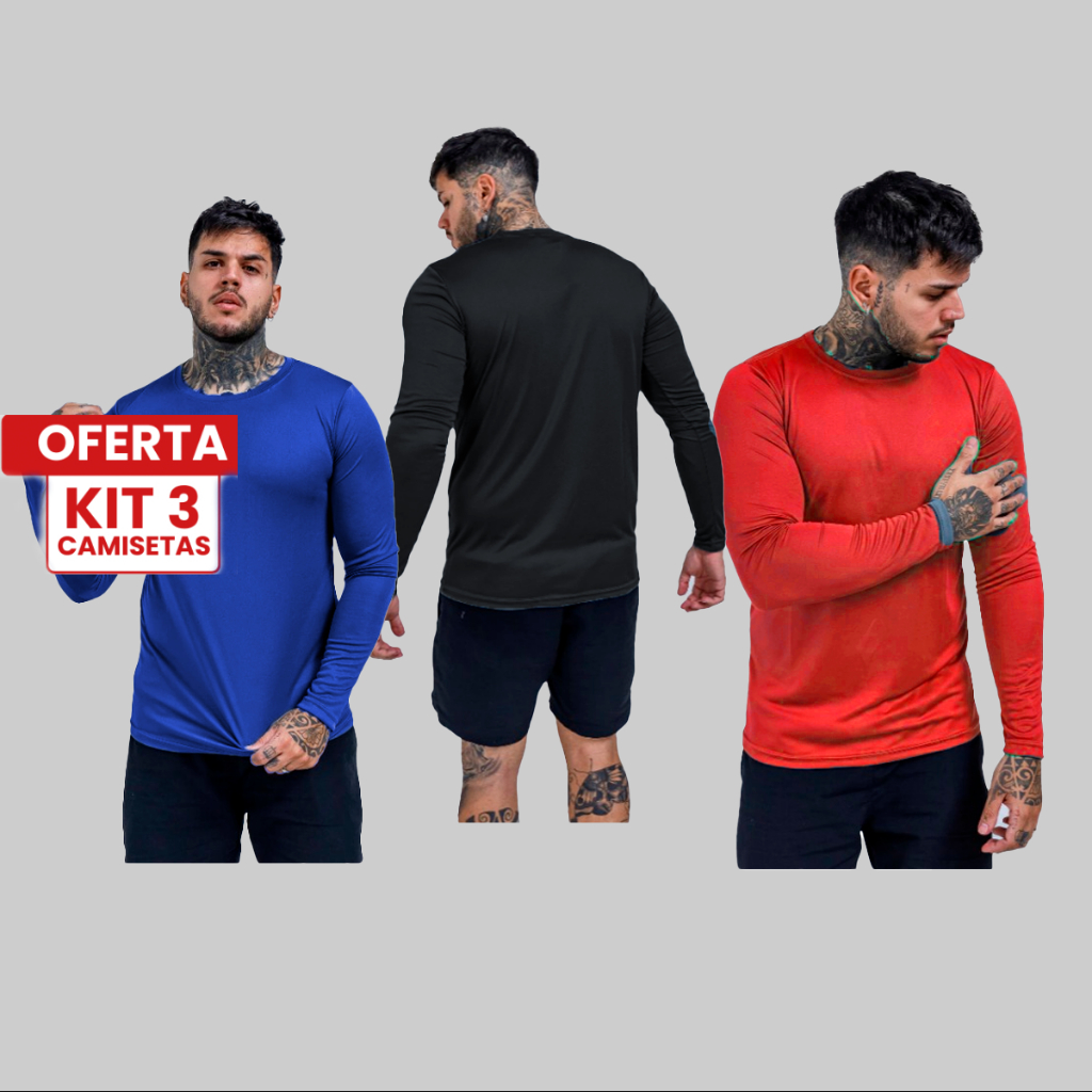 Promo Kit 3 Camisetas Camisa Térmica Proteção Solar Manga Longa Blusa UV 50+