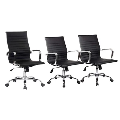 Conjunto com 1 Cadeira Presidente Giratória e 2 Cadeiras Diretor Giratória com Regulagem de Altura à Gás, Esteirinha