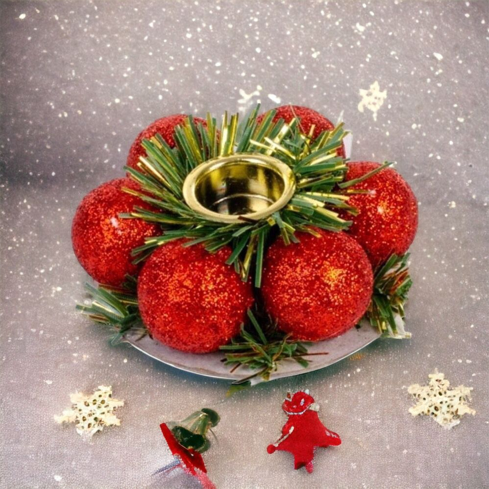 Kit 2 Castiçal Bolas De Natal Porta Vela Decoração de Evento e Mesa de Natal Enfeite Natalino 9cm