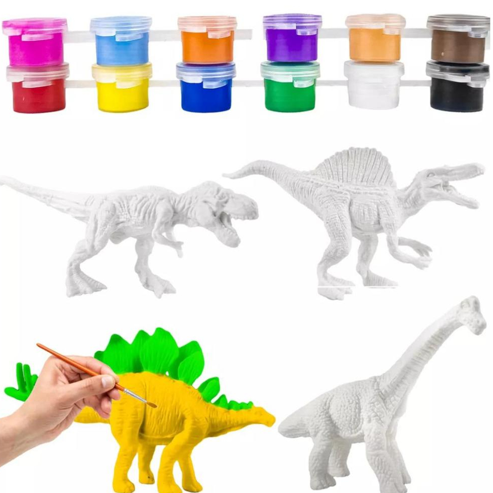 Kit 3 Dinossauros 3D Para Pintar e Colorir Dino De Borracha Pequeno 6 Cores 1 Pincel - Envio Emidiato -