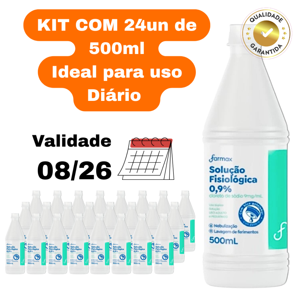 Kit C/24 Unidade Soro Fisiológico 0,9% 500ml Farmax Envio Imediato