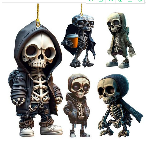 OM Cartoon Crânio Acrílico Do Carro Pendurado Na Árvore De Halloween Decoração Da Casa
