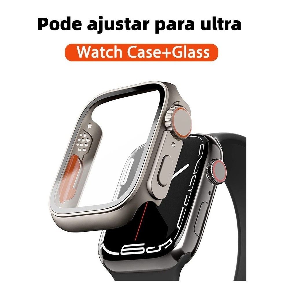 Novo capa case com vidro protetora para apple watch 45 44 41 40 pode ajustar para ultra 49 mm