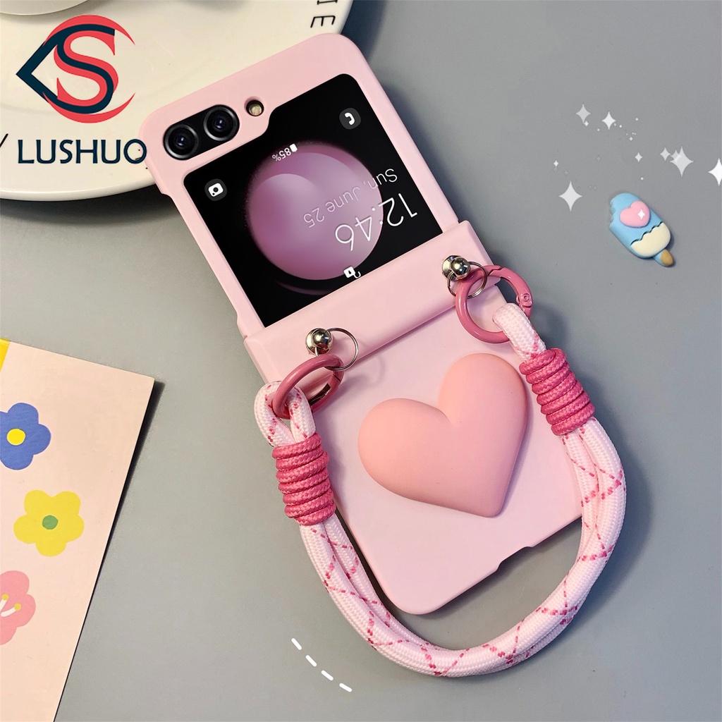 Capa Traseira Do Telefone LUSHUO Para Samsung Galaxy Z Flip 5 4 3 Simples Kawaii Sensorial Coração De Amor Rosa Portátil Flip5 ZFlip5 ZFlip 5 Flip4 Flip3