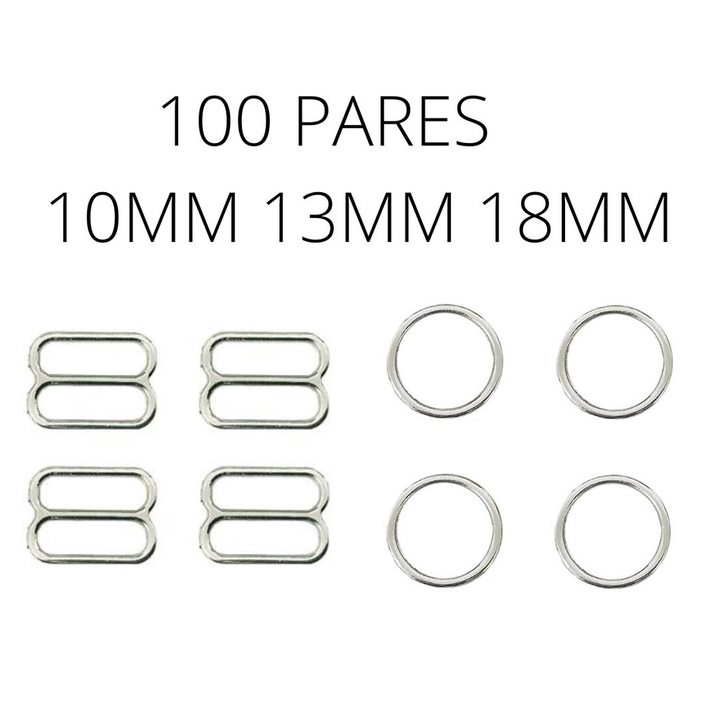 100 Pares de Argola e Regulador de Sutiã 10mm 13mm 18mm Metal