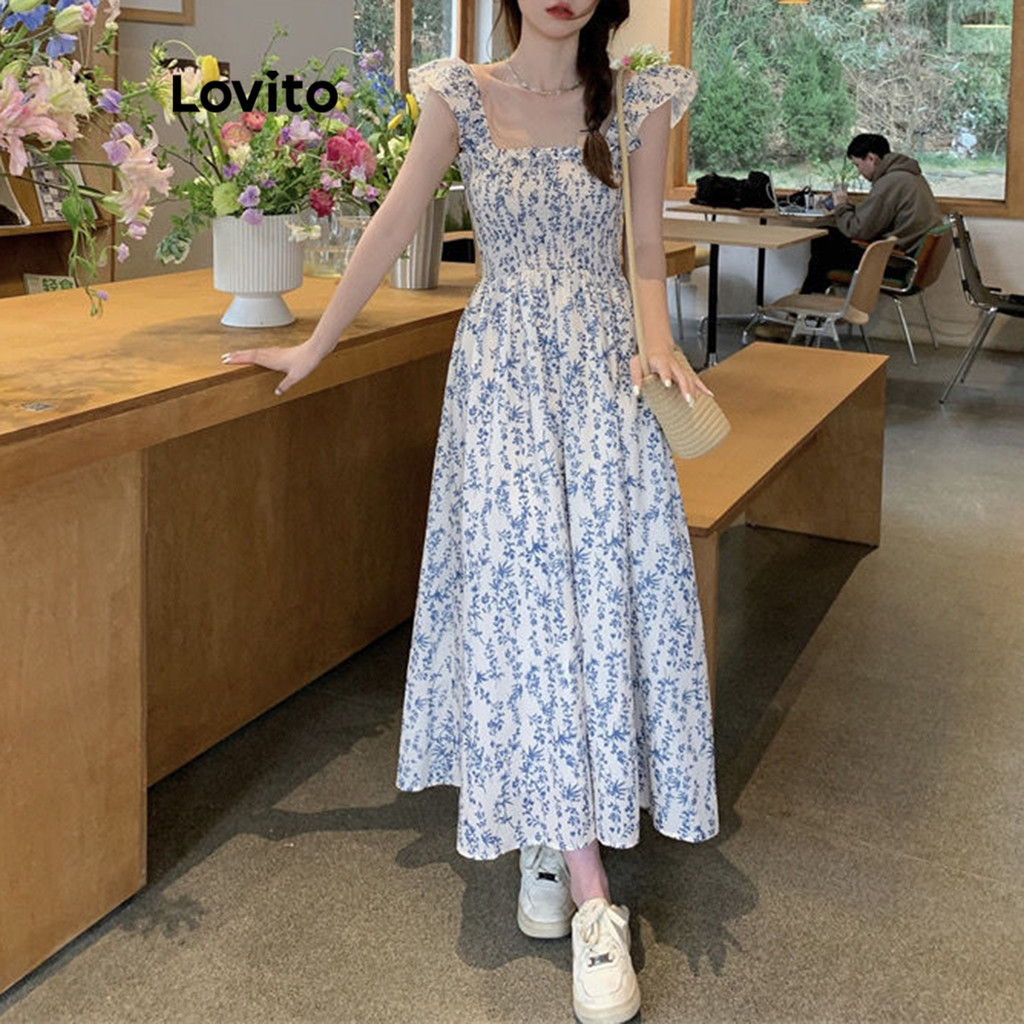 Lovito Vestido elegante com estampa floral Ditsy para mulheres L87ED080