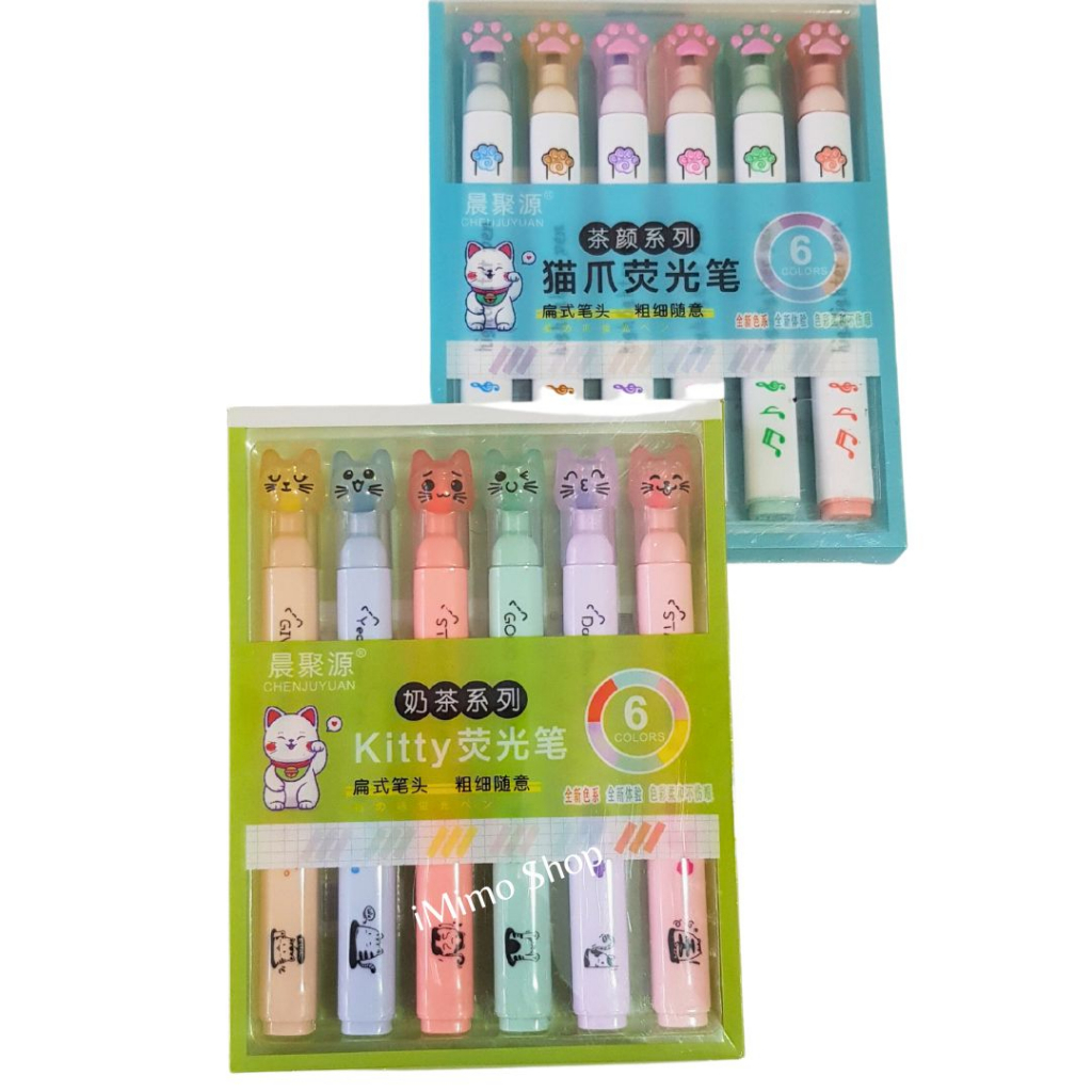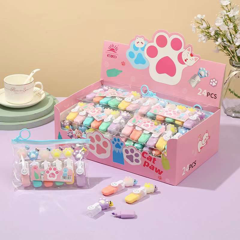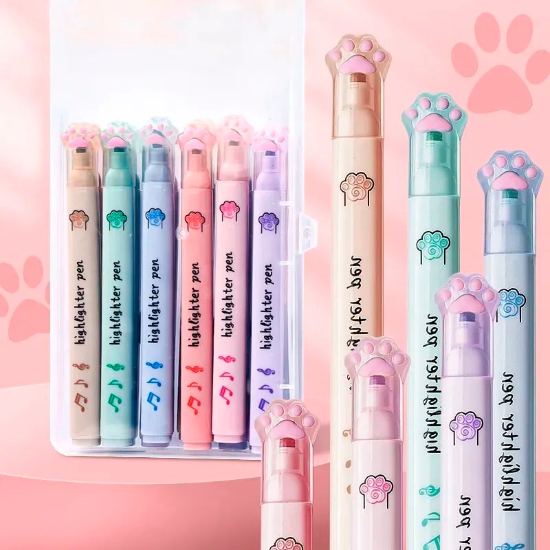 Kit Marca Texto 6 Unidades Gatinho Kawaii - Papelaria Fofa volta as aulas Cute Cat Paw Pata de Gato Patinha