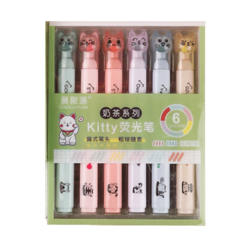 Kit C/6 Marca Texto de Gatinho Ponta Flexível Papelaria Fofa