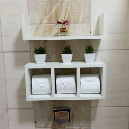 Prateleira 2 Peças Nicho De Banheiro c\Repartições Mdf Branco Tx Instalação Invisível