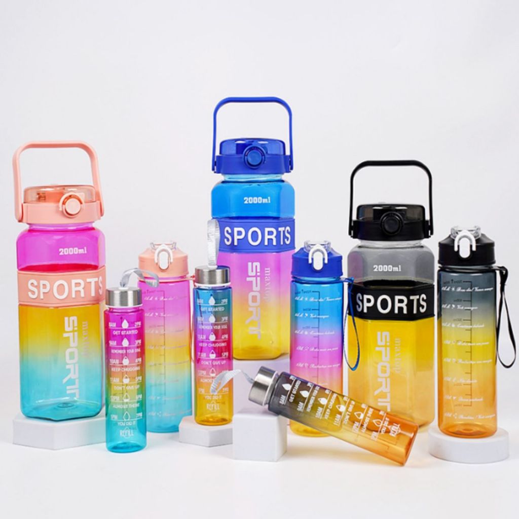 KIT 3 Sport 2024 Garrafa 2000ml de Água com Adesivos 2D Motivacional Squeeze STJ-004