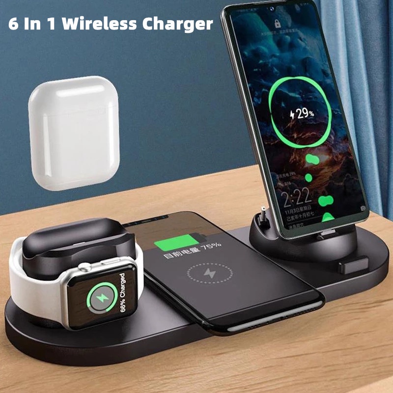 Carregador Sem Fio Para iPhone 11 12 14 Pro Max 13 Mini Xs XR 8 Plus 10W Carregamento Rápido Apple Watch Airpods 6 Em 1 Estação De Dock
